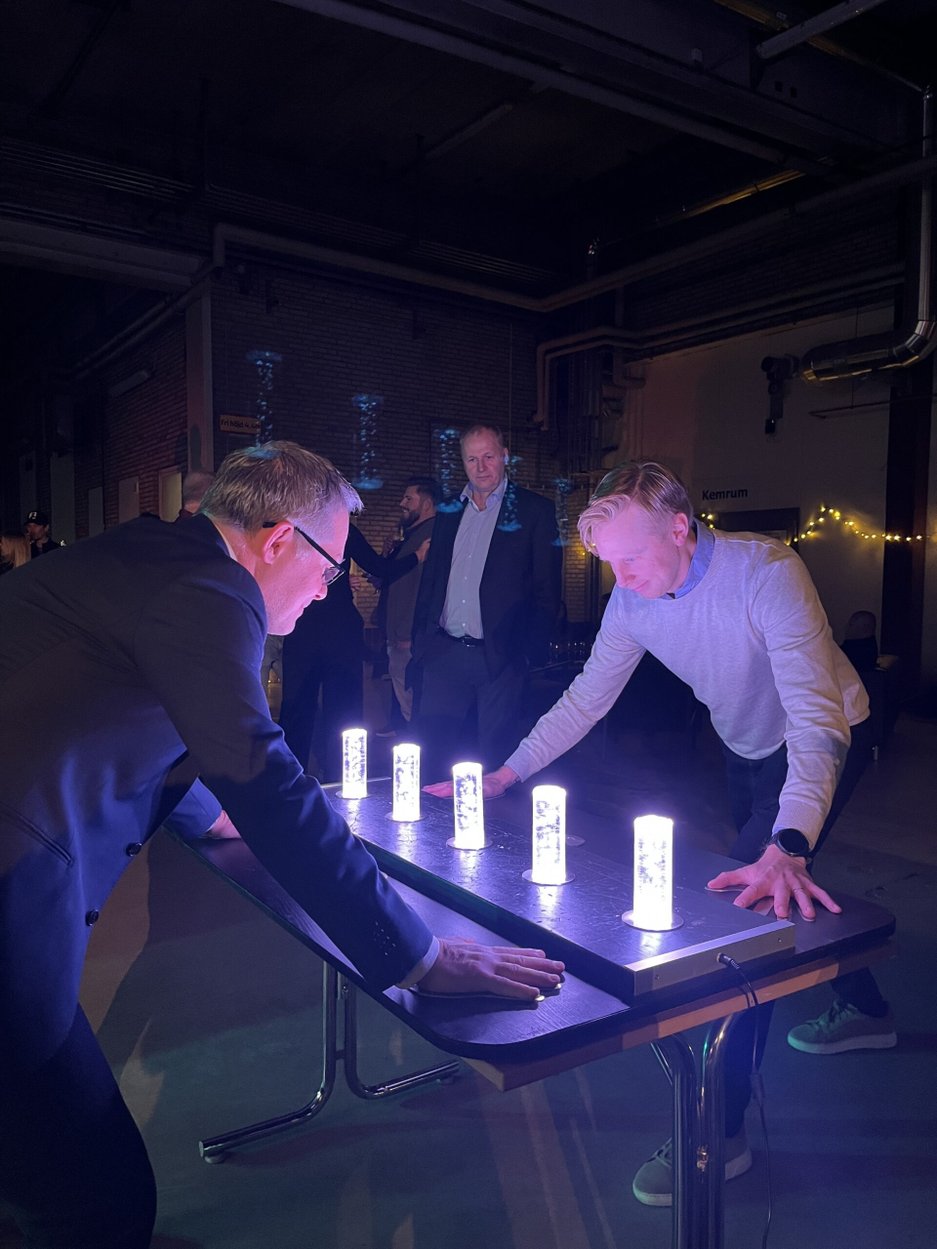 Vi grundade med en ovanlig, industriell miljö – mejeriets egen tankhall. Där byggde vi upp en arkadyta med aktiviteter som rundpingis och ett ljusbord inspirerat av “Nattduellen” i Mästarnas mästare.
