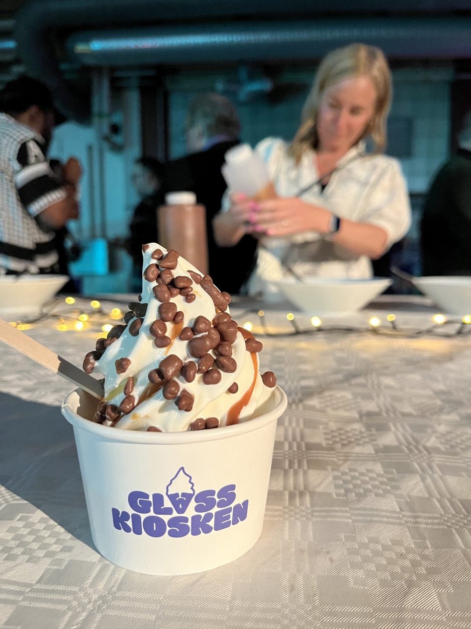 Bottenvikens skötte baren och bjöd på en enklare ölprovning, medan Centrum Krog stod för maten – självklart med Norrmejeriers produkter i fokus. Från varmrätt till dessert, med mjukglassmaskinen som kvällens favorit.
